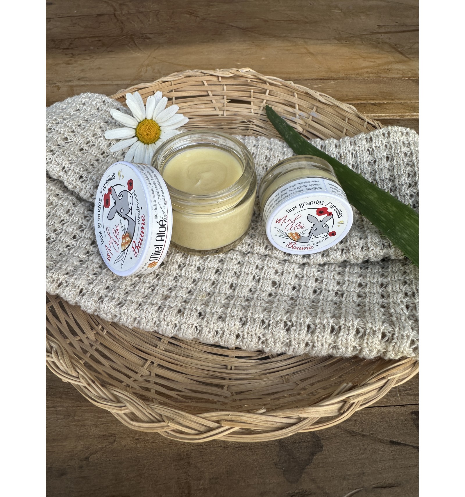 Un cocktail d'ingrédients hydratants : miel, aloe vera, lait d'ânesse ; et cicatrisants : miel, aloe vera, macérât de calendula. Le tout avec une texture crémeuse et protectrice grâce à la cire d'abeille et l'huile de tournesol.
