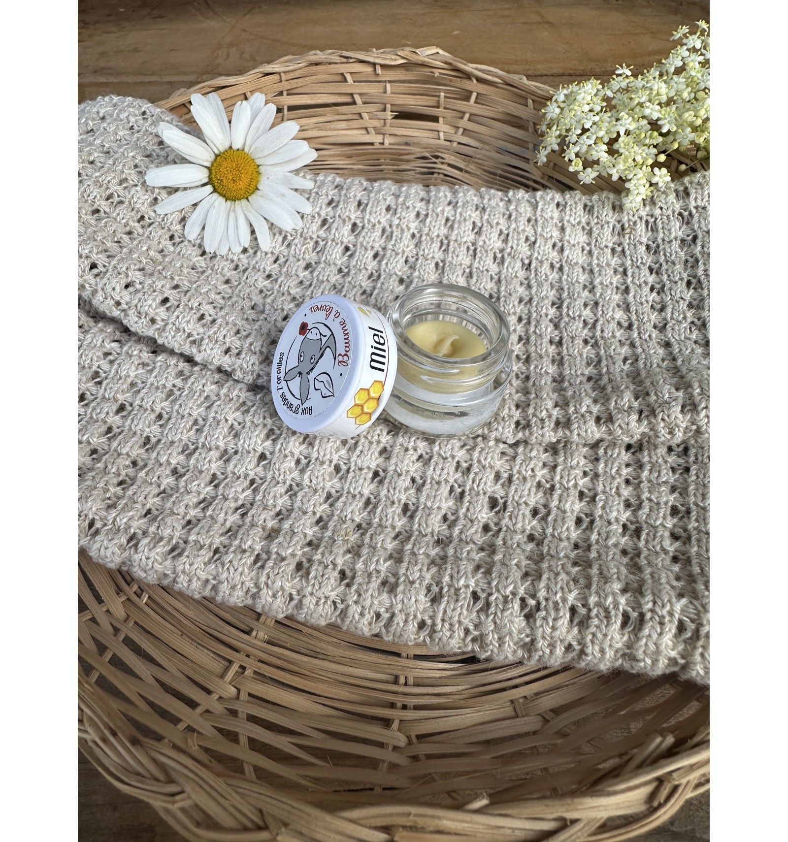 Ing : huile de tournesol*, beurre de karité*, cire d'abeille*, lait d'ânesse, miel*, cosgard.