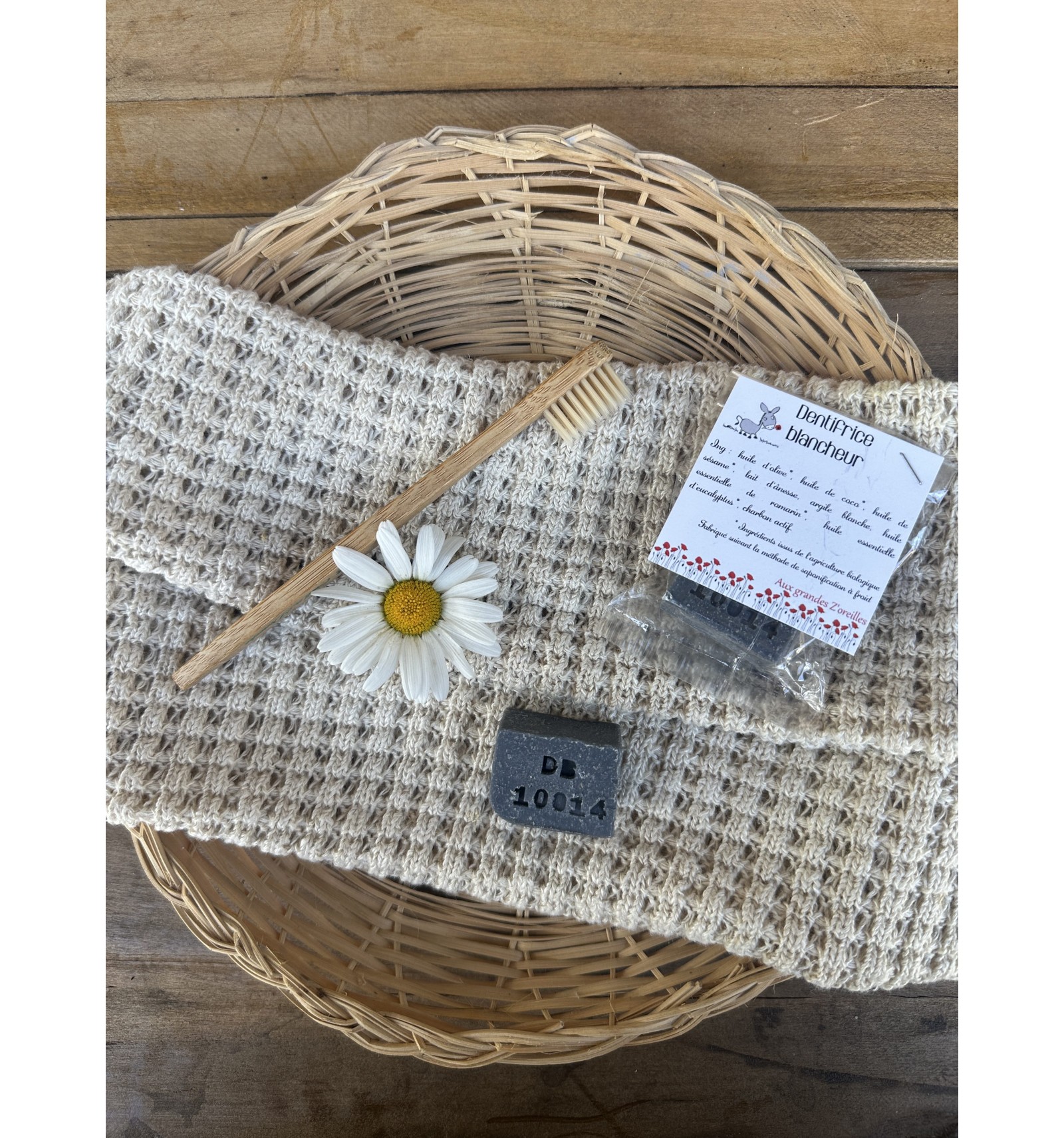 Vous avez peur de ne pas réussir à différencier vos savons en les choisissant sans étiquette ? Pas de panique, les initiales de chacun sont tamponnées dessous. Pour le dentifrice blancheur c'est DB.