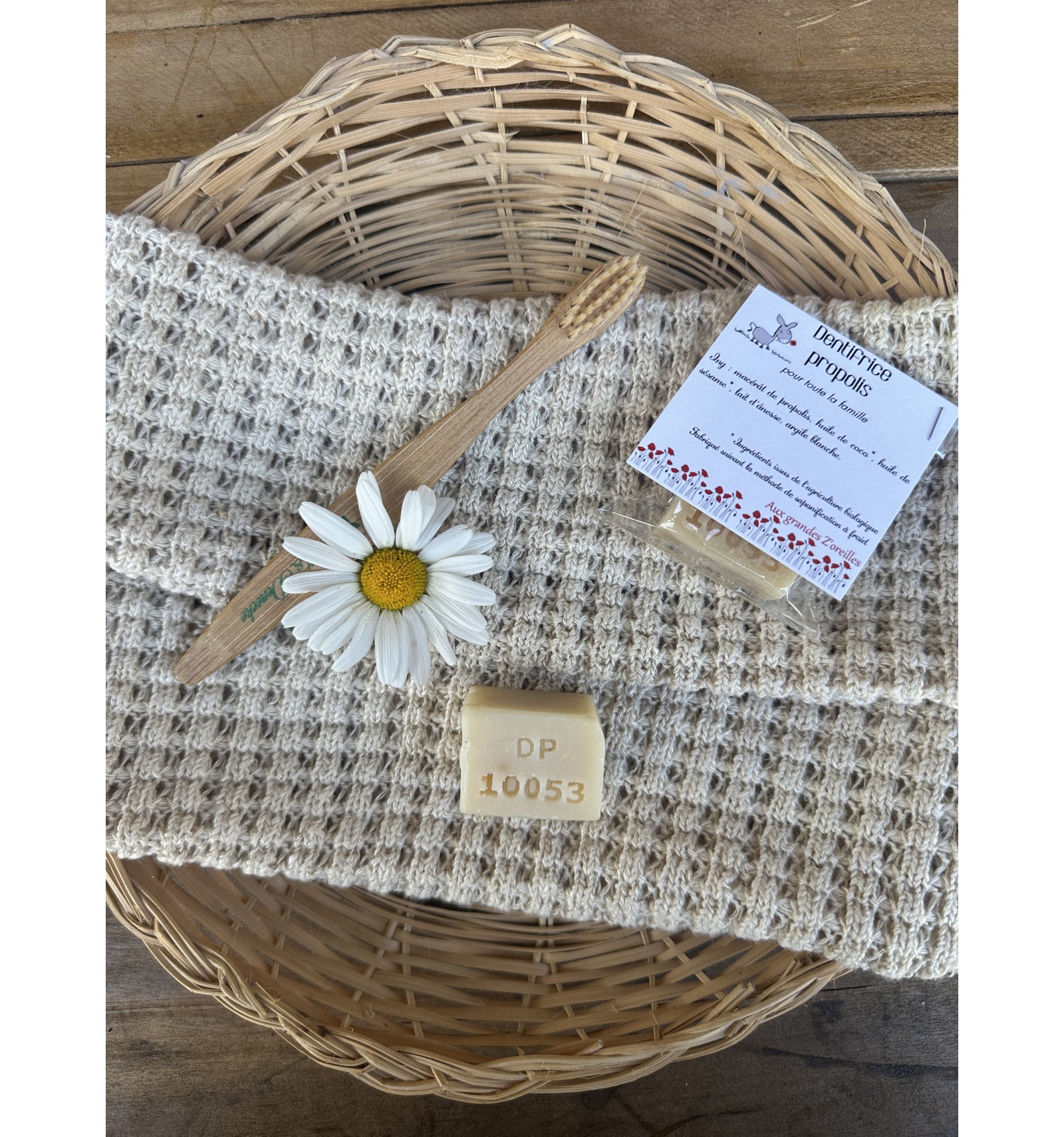 Un dentifrice solide à la propolis et à l'argile blanche pour allier hygiène et soin des gencives sensibles.